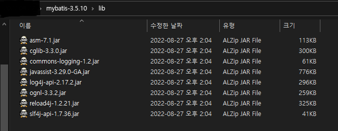 mybatis를 사용하려면 관련 라이브러리 파일을 내려받아야 한다.
