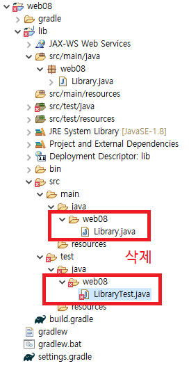 Gradle 프로젝트를 생성하면 기본 예제 파일도 함께 만들어지는데 이 예제 파일을 제거한다. 또한 프로젝트 속성 정보를 보면 프로젝트의 컴파일러 버전도 1.5로 되어 있는데 이것을 1.7로 변경한다.