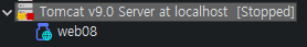 톰캣 서버에 웹 프로젝트 'web08'을 배치하고 실행한다. Servers 뷰의 톰캣 실행환경에 web08 프로젝트를 추가한다(그림 5).