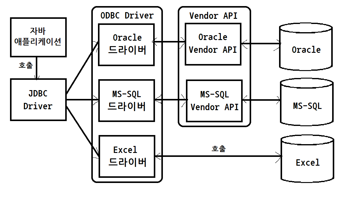 - ODBC나 벤더 API처럼 C나 C++로 만든 API를 호출하지 않기 때문에 Pure Java라 함