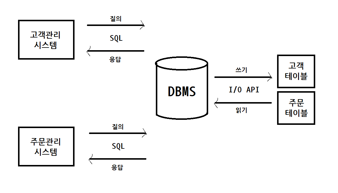 데이터베이스 관리 시스템(DBMS)의 등장으로 파일 입·출력 API를 사용하여 데이터를 읽고 쓰는 것을 개발자가 아닌 DBMS가 담당하게 되었다.