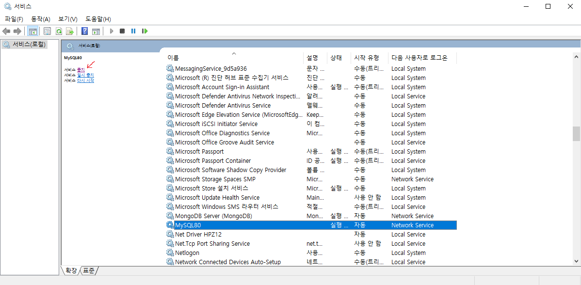 먼저 MySQL 데이터베이스를 정지시킨다(그림 1).