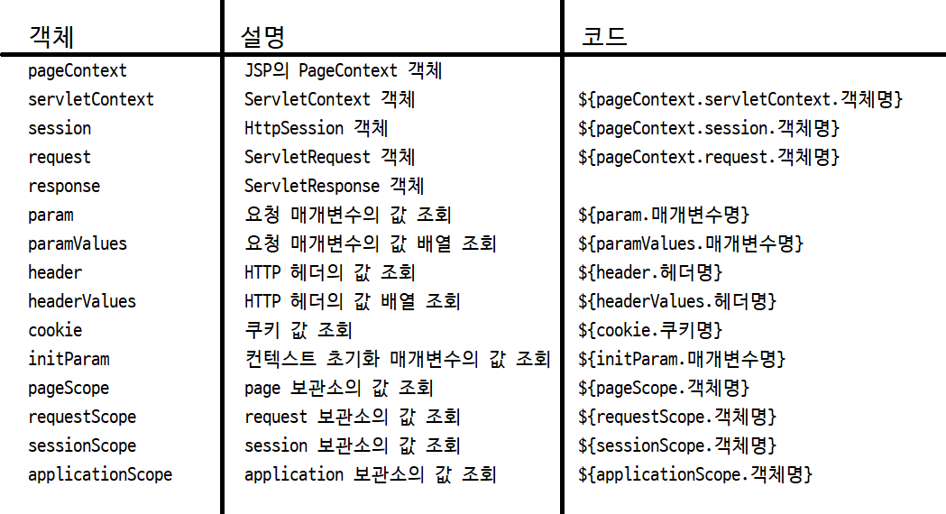 다음은 JSP에서 기본 제공하는 EL 객체이다(그림 4).