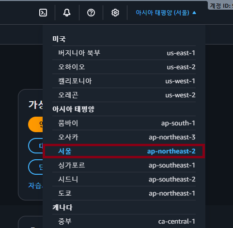 2) 리전 선택