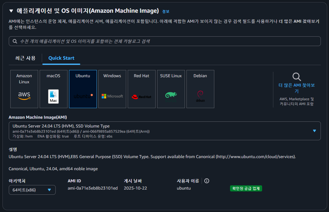 OS(운영체제)를 선택하는 단계이다. OS의 종류로 Mac OS, Windows 11 등이 있지만, 용량을 많이 차지하고 성능도 많이 사용한다. 따라서 서버를 배포할 컴퓨터의 OS는 훨씬 가벼운 Ubuntu를 많이 사용한다.